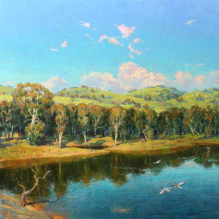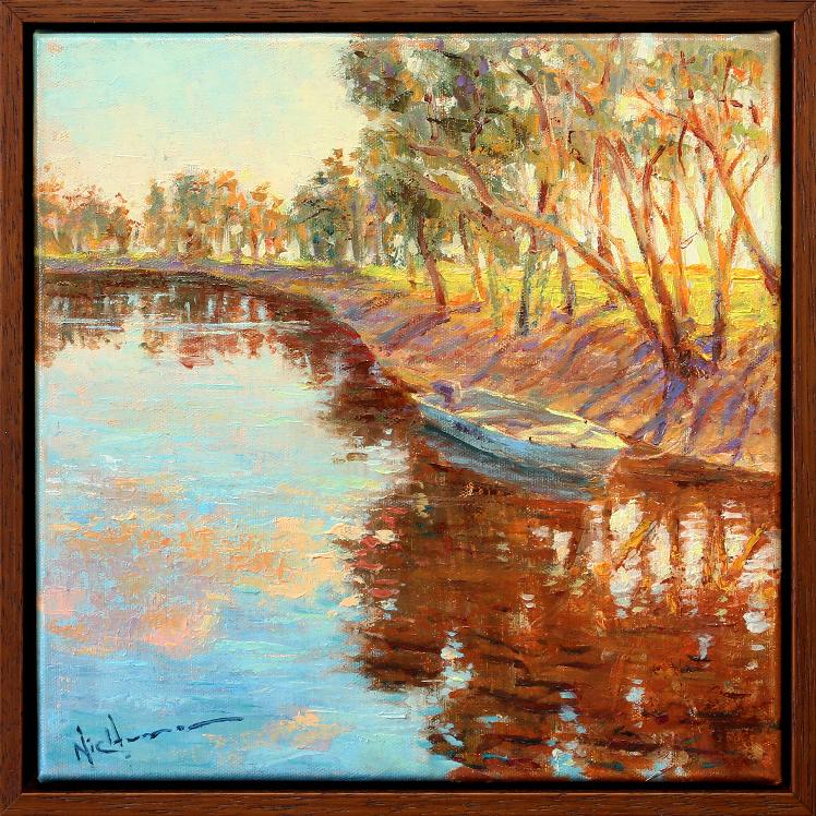 On the Murray Bank | Image size: 30cm x 30cm | Frame size: 33cm x 33cm | Oil onto stretched canvas